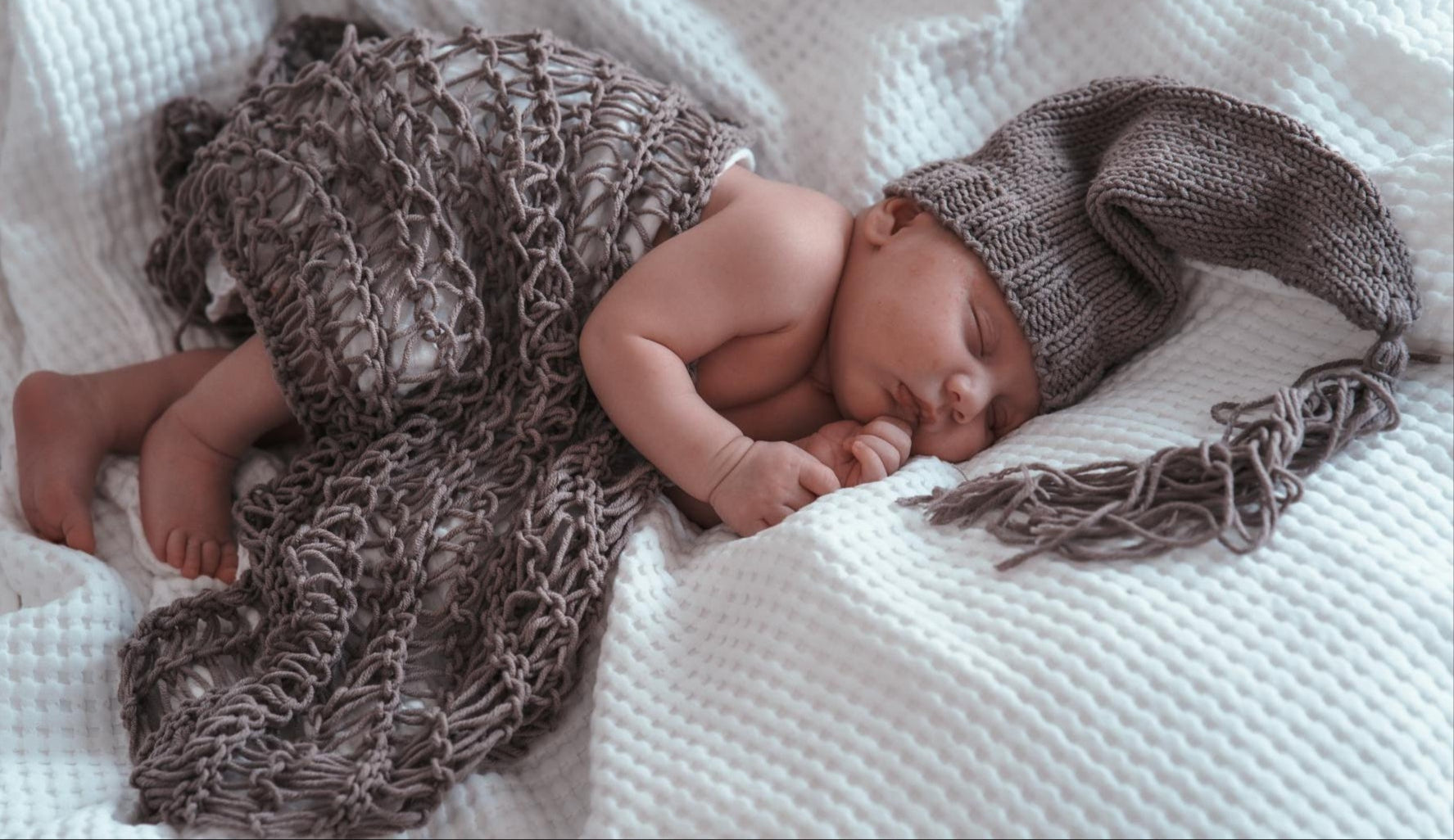 TOUR DE LIT BEBE - CozyKnot™ - Blanc Gris